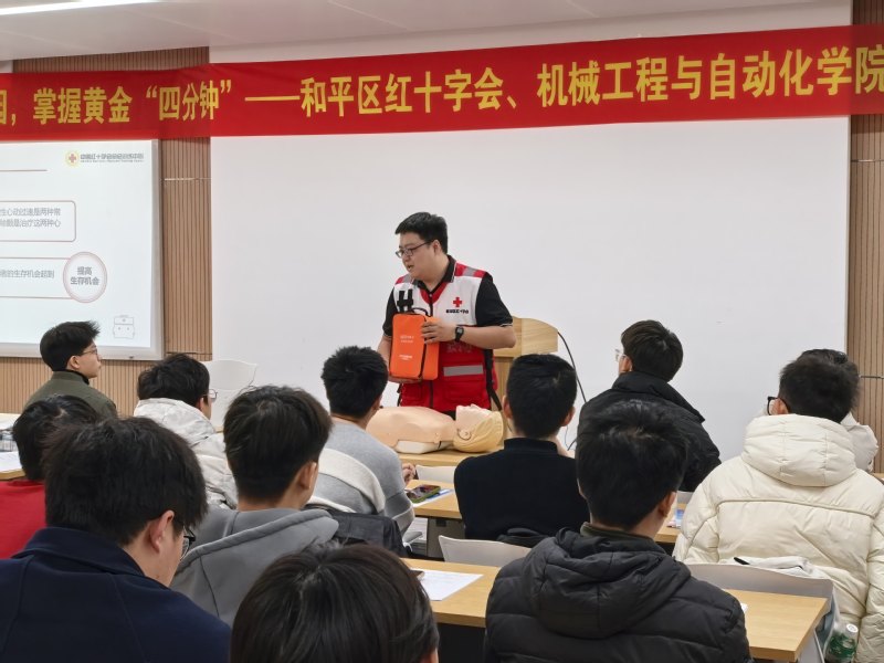 本次培训聚焦心肺复苏(CPR)与自动体外除颤器(AED)使用的核心知识与实操技能。培训中,红十字会讲师系统讲解了应急救护的基本原则、心肺复苏的基础知识、针对成人的心肺复苏完整操作流程以及AED设备的正确使用方法。讲解内容紧扣关键、深入浅出,强调了“黄金四分钟”在心搏骤停现场救援中的决定性作用。